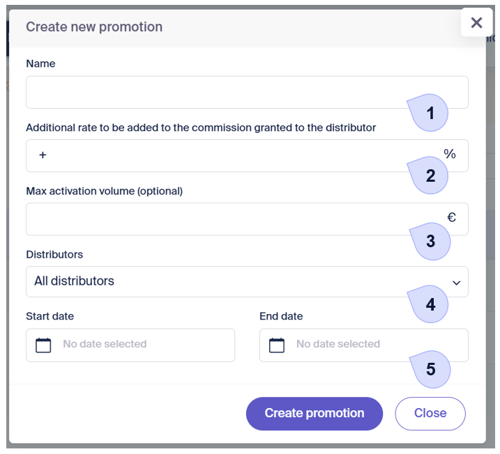 2. Additional rate: the extra rate you want to offer distributors for a specific period. Be careful to enter the additional percentage, not the total commission rate (e.g. +3%)